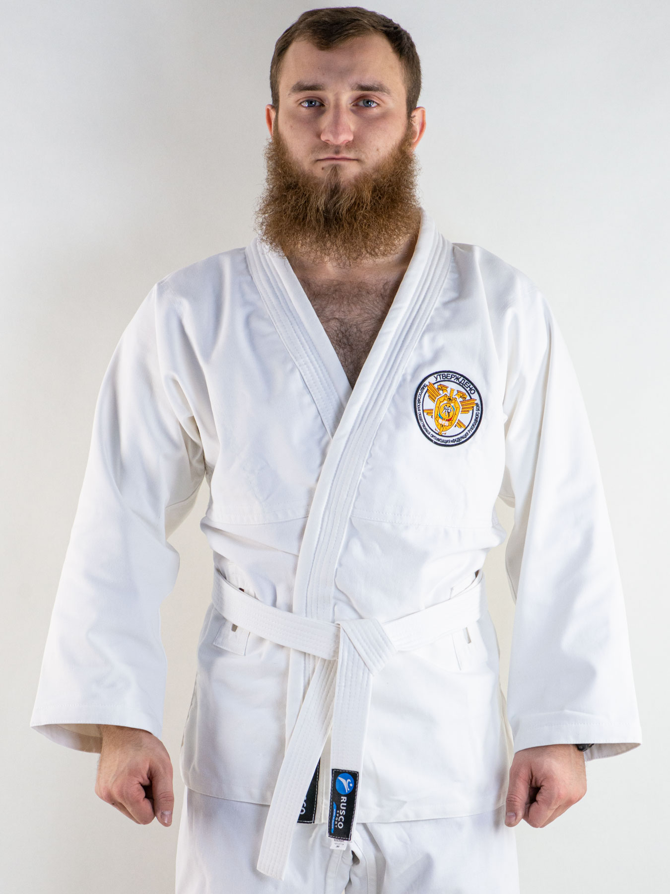 Модель кимоно Classic бренда Rusco предназначена для тренировочного процесса и соревнований. Изготовлено из 100% хлопка. На куртке имеются усиленные прорези под пояс и подмышки. На груди с левой стороны нашивка Федерации рукопашного боя. Брюки на резинке и с тесьмой. Пояс в комплекте.