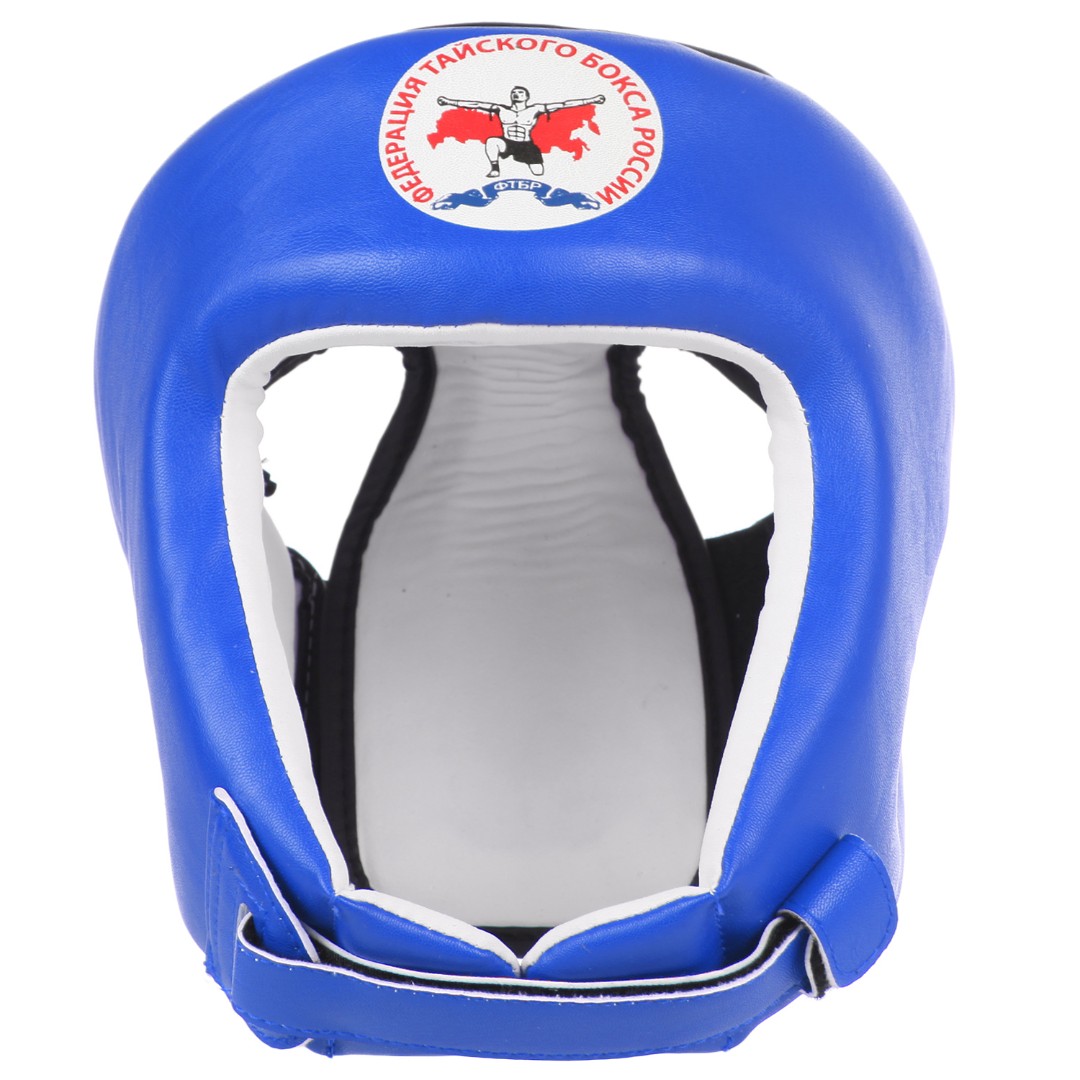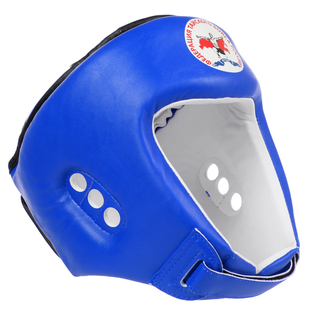 Шлем турнирный для тайского бокса Разработан при содействии федерации тайского бокса России (ФТБР). Конструкция шлема обеспечивает отличную обзорность. Верхняя часть головы защищена от ударов локтями накладкой, толщиной 120мм. Дугообразная форма лобной части шлема надежно прикрывает брови от рассечений. В подбородочной зоне имеются подушки, предназначенные для защиты от натирания подбородочным ремнем. Внутренний вкладыш имеет два слоя полимерной пены, что обеспечивает хорошую защиту головы спортсмена. Общая толщина шлема 280мм, в то же время он достаточно легкий, не более 350гр. Шлем имеет большой диапазон регулировок по размеру, благодаря широкой застежке на затылке. Два типоразмера позволяют охватить максимальный размерный ряд. M – от 52 до 56, L – от 56 до 60