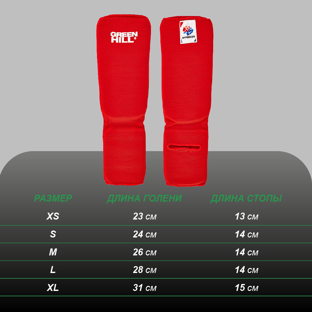 Защита голени и стопы из эластичного материала, представляющего собой комбинацию хлопка и полиестера. Наполнитель защиты - вспененный пенополиуретан. Легкость защиты обеспечивает удобство во время соревновательных поединков. Данная модель одобрена Международной Федерацией Самбо FIAS и допущена к соревнованиям по боевому самбо любого уровня.