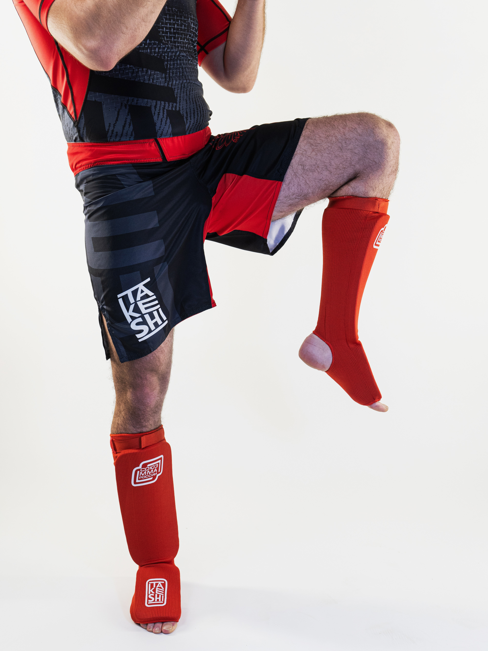 Защита ног Takeshi fight gear Союз ММА России красная